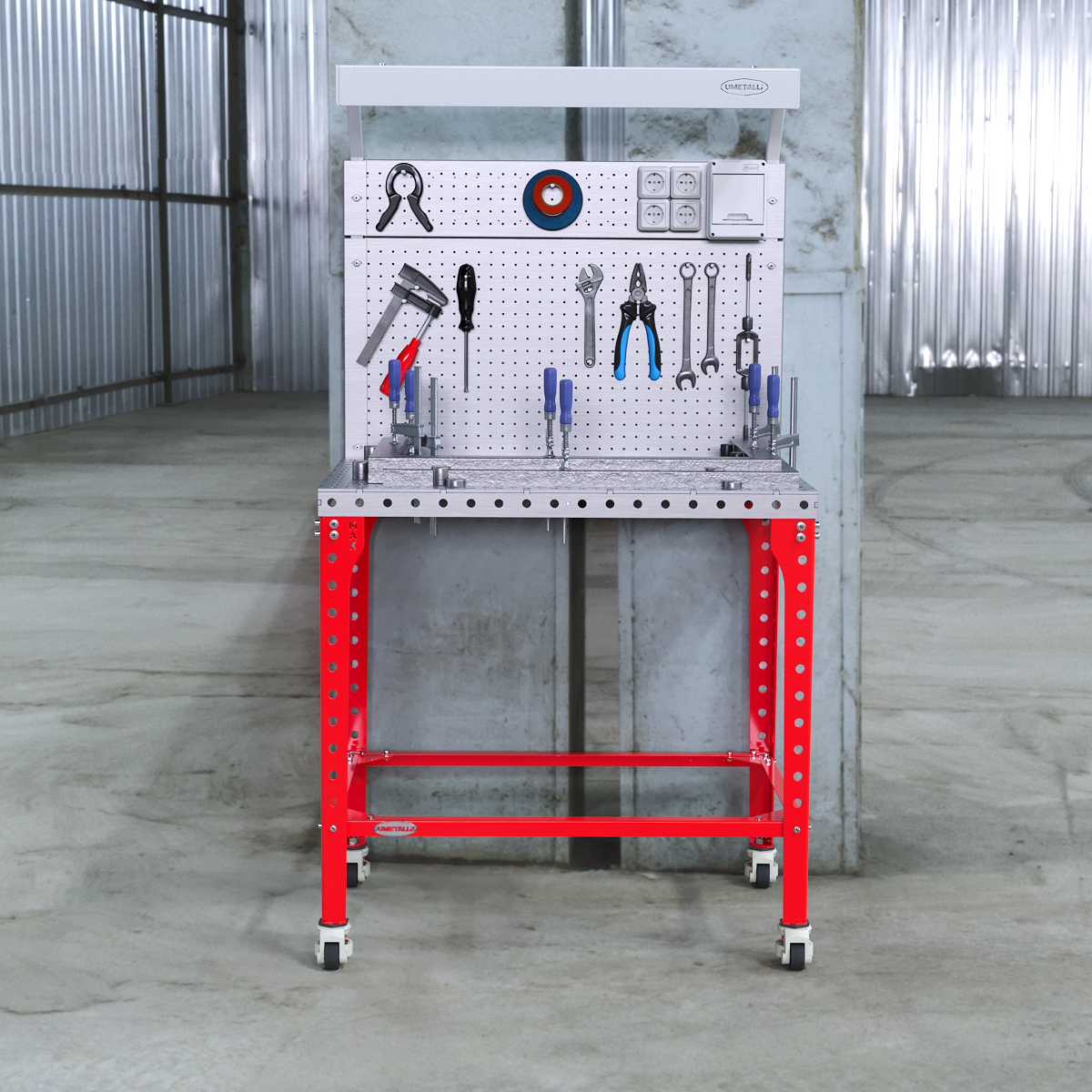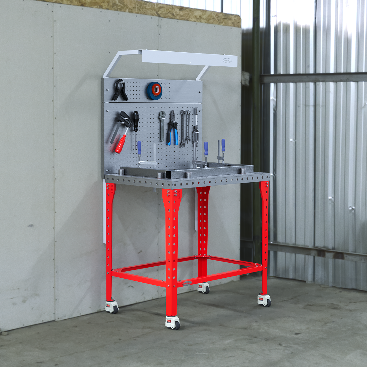 MultiPanel Light is een universeel geperforeerd paneel met een bovenliggende balk voor verlichting, waardoor een efficiënte organisatie van de werkruimte mogelijk is en directe toegang tot elektriciteit op de werkplek. Dankzij de talrijke gaten past het paneel zich gemakkelijk aan verschillende gereedschaps- en accessoirehouders aan, terwijl het ingebouwde stopcontactblok het aansluiten van elektrisch gereedschap of extra verlichting vereenvoudigt. Dit ontwerp houdt alles wat je nodig hebt binnen handbereik terwijl het een nette werkoppervlakte behoudt.